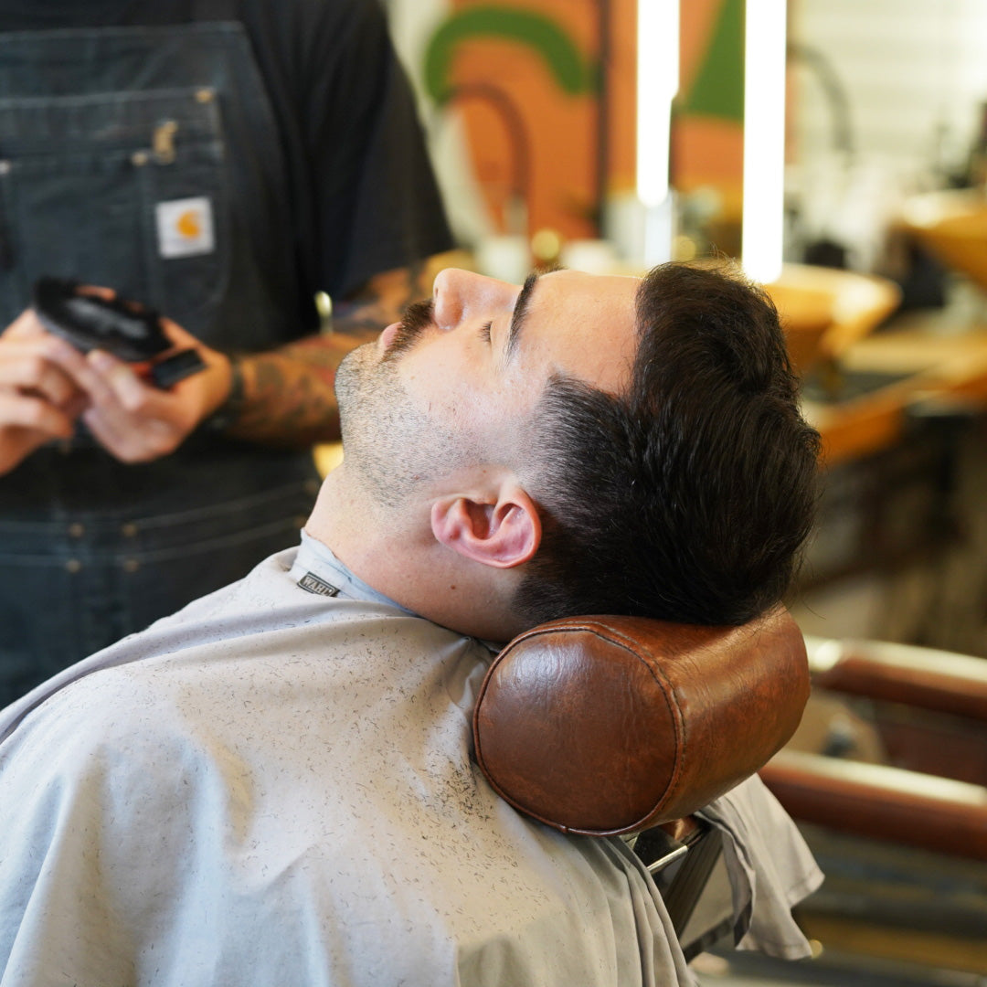 A traditional hot towel shave with straight razor precision. Clean, close, and unrushed, the way it should be.